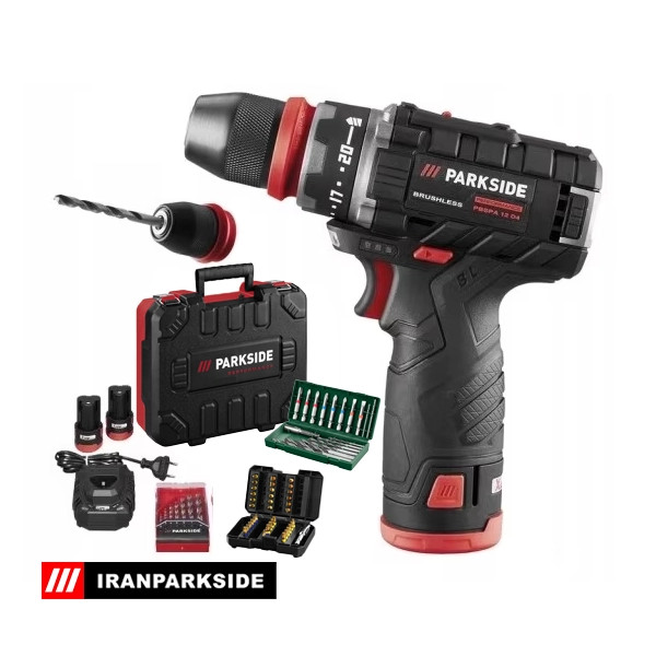 دریل شارژی براشلس چکشی 45 نیوتن پارکساید PSBSAP 12 A1 (با جعبه آکبند) سه نظام جداشونده
