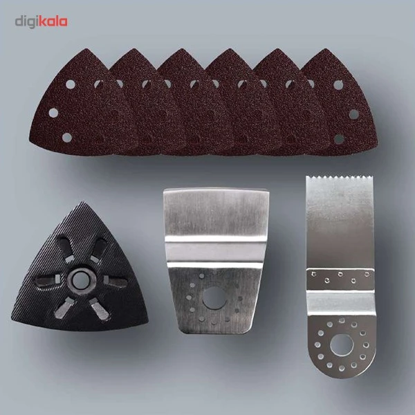 ✨️●《این ابزار چند منظوره با تجهیزات گستردهای ارائه میشود که آن را فوراً آماده استفاده میکند: یک صفحه سنگزنی/سنباده دلتا، کاغذ سنباده 6x، یک کاردک و یک تیغه اره HCS با برش عمیق
