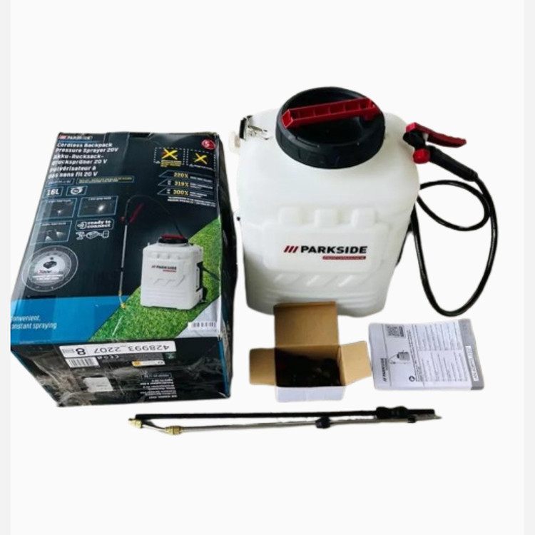 ✔ لوازم جانبی کامل و حرفهای همراه این سمپاش چندین نازل مختلف از جمله نازل جت تخت، نازل تک سر، نازل دو سر و نازل اسپری ارائه میشود که باعث افزایش کارایی دستگاه در شرایط مختلف میشود. همچنین یک میله تلسکوپی فولاد ضد زنگ و یک قطب پلاستیکی برای دسترسی بهتر به نقاط دورتر در نظر گرفته شده است. نکات مهم درباره این محصول این محصول بدون باتری و شارژر عرضه میشود. اما شما میتوانید از باتری 20 ولت 4 آمپر PAPS 204 A1 یا سایر باتریهای PARKSIDE X 20 V Team که با این دستگاه سازگار هستند، استفاده کنید. وزن دستگاه بدون باتری 3.6 کیلوگرم است، که برای حمل طولانیمدت طراحی مناسبی دارد. طول شلنگ 1.2 متر است که انعطافپذیری لازم را برای سمپاشی راحتتر فراهم میکند. توان نامی دستگاه 300 وات است، که قدرت کافی برای پاشش مداوم و یکنواخت را ارائه میدهد. مناسب برای چه کسانی؟