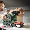 سیستم قفل سریع پارکساید تعویض نوار را بسیار آسان کرده است. کافی است قفل کناری را آزاد کرده، نوار قدیمی را خارج و نوار جدید را روی غلطکها قرار دهید. تنظیم خودکار تسمه از انحراف جلوگیری میکند.