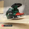 اگر تختهها پس از برش یا اتصال ناهموار هستند، با چند بار عبور سنباده پارکساید، سطحی کاملاً صاف و آماده مونتاژ به دست میآوری. -