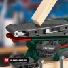 سیستم قفل سریع پارکساید تعویض نوار را بسیار آسان کرده است. کافی است قفل کناری را آزاد کرده، نوار قدیمی را خارج و نوار جدید را روی غلطکها قرار دهید. تنظیم خودکار تسمه از انحراف جلوگیری میکند.